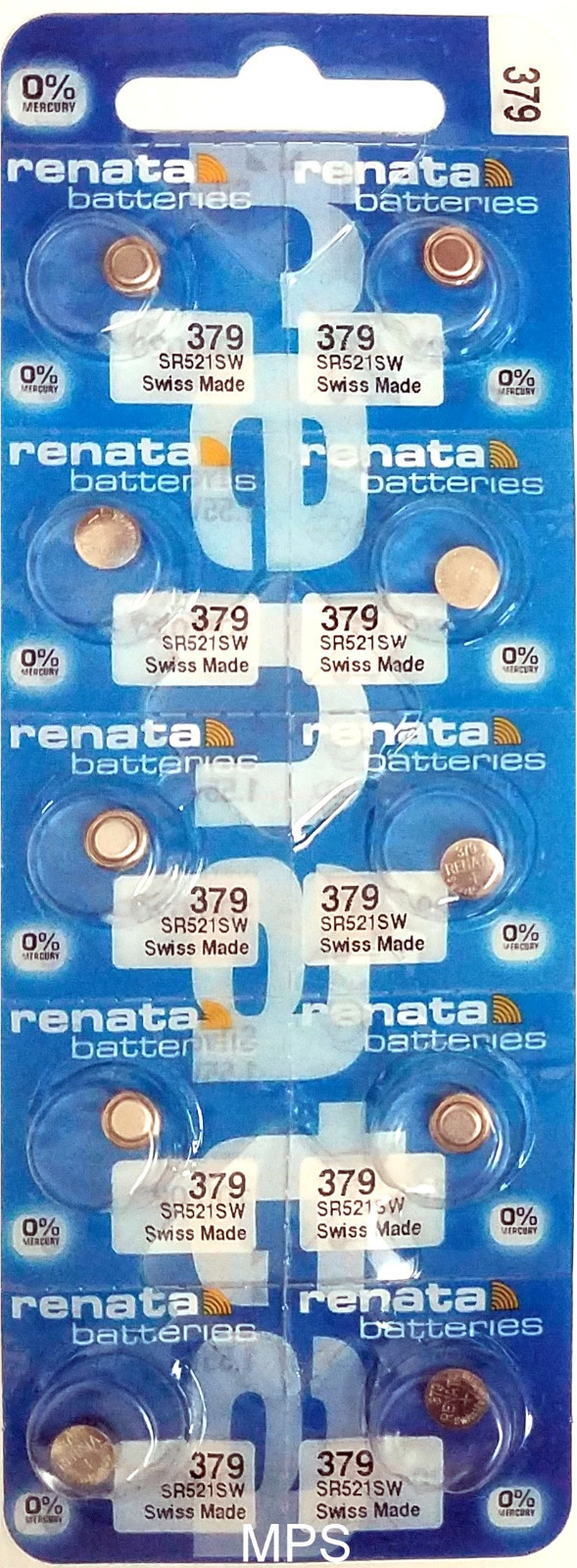 • This is a new set of five #379 (SR521SW) Renata watch batteries