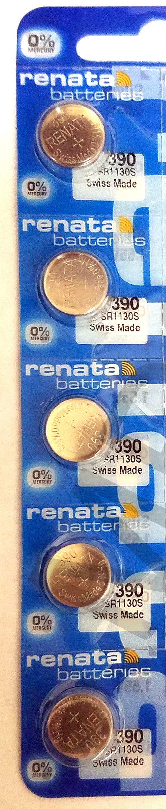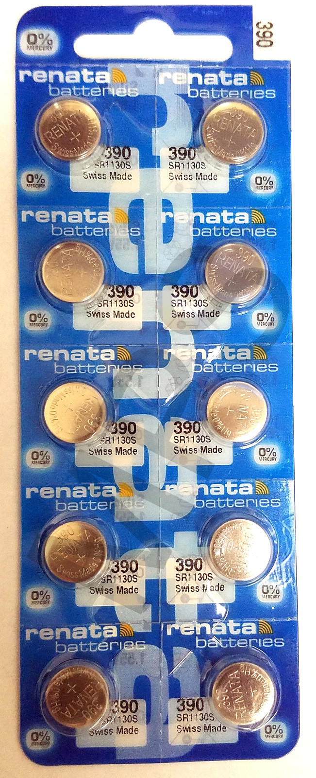 This battery is mercury free and has a capacity of 60 mAh. Suitable for analog and basic digital watches and hand held devices that have a continuous, low power consumption. Renata Button battery cells are at top of the world with a reported failure rate of less than 1%. Manufacturing high quality batteries with high capacity retention on storage, Renata continues to provide reliable power sources for many hand held devices. Equivalent: Energizer 390, Maxell SR1130SW, Varta V390, Rayovac 390, Duracell D389/390, Citizen 280-24, Seiko SB-AU, I.E.C SR1130 (SR54) Features: