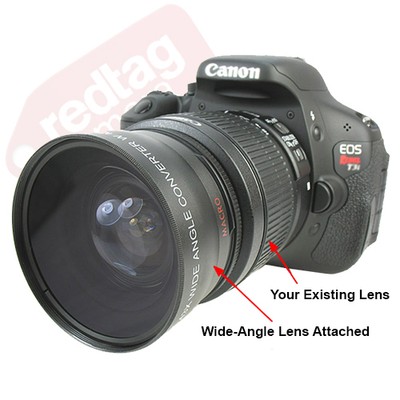 The wide angle lens widens the angle of view by multiplying the focal length of the camera lens by .43 times. This doubles the angle of view making it an excellent lens for group shots or architecture. Improve the image composition of scenic views, and interior shots, especially when movement is restricted. The lens is supplied with a macro attachment that will allow for unsurpassed close up photography.