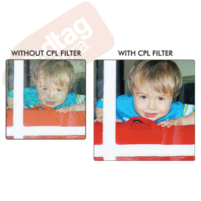• Polarizing filter eliminates reflections from non-metallic surfaces, and increases contrast and color saturation