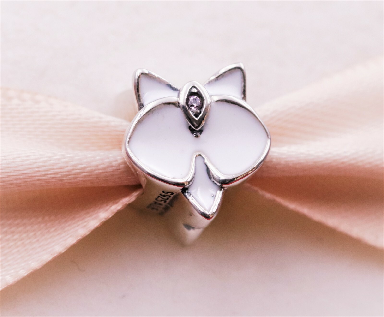 AUTHENTIC PANDORA 925ALE Orchid Charm, White Enamel, 792074NB23