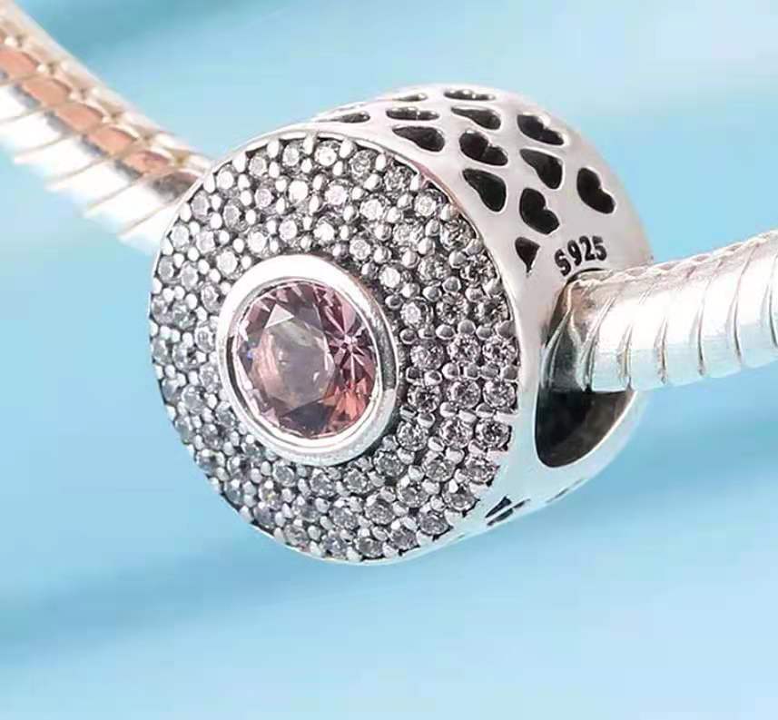 Authentic Pandora Radiant Splendor Blush Pink Crystal Bead Silver Charm 791763