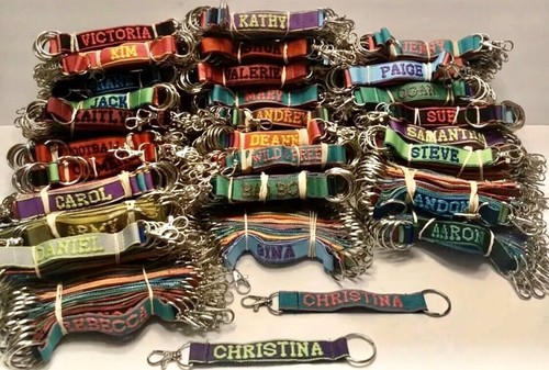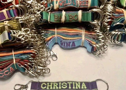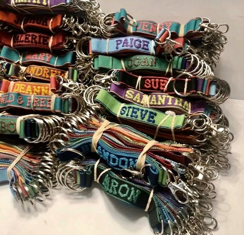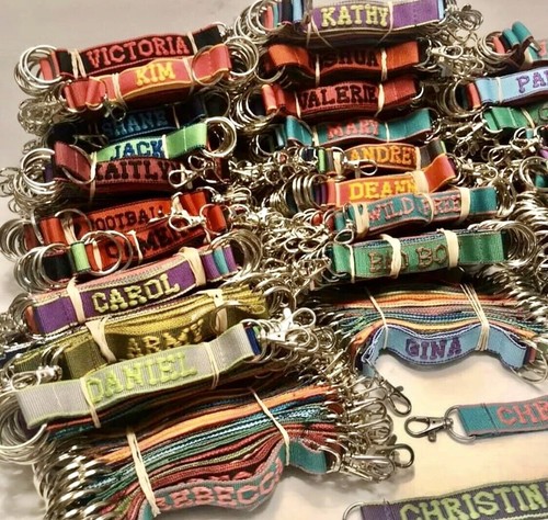 I acquired a large lot of hundreds of these vintage embroidered key rings.