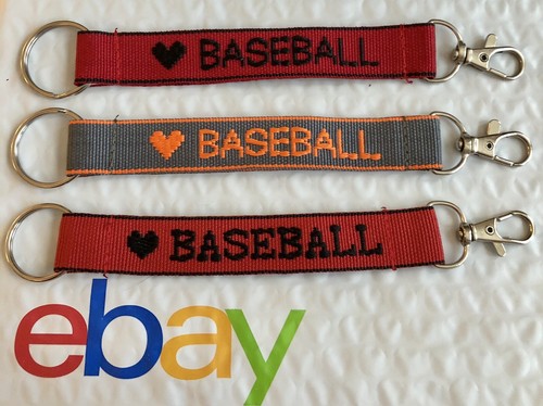 Deliver to: Columbus Ships in 24/48 hrs I ❤️ BASEBALL Personalized Embroidered Strap Key Rings Keychains w Attachment Clasp.