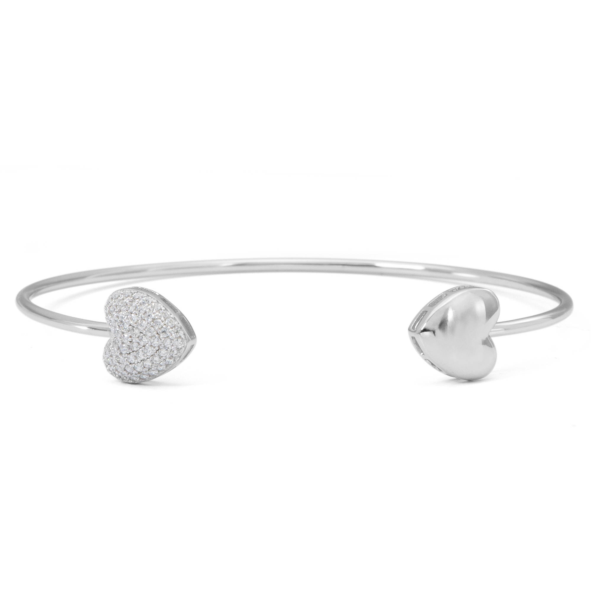 Deliver to: Unknown Ships in 24/48 hrs This CZ sterling silver rhodium-plated heart bangle is the perfect accessory. It would look great with any outfit. This bracelet is trendy and fashionable. This bracelet would make for the perfect gift for any holiday or special occasion.