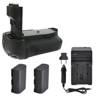 Accepts two LP-E6 battery packs, approximately doubling the camera's shooting capacity Alternately, using a different slot-in insert, 6 AA batteries can be used. makes vertical shooting easy and comfortable.