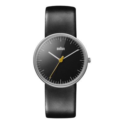 Deliver to: Unknown Ships in 24/48 hrs Case - Case Material: Stainless steel, satinised - Case Shape: Round - Case Colour: Silver - Bezel Function: - - Bezel made of: Stainless Steel (satinised) - Crystal: Mineral crystal - Back: Stainless steel back Movement - Display Type: Hours, Minutes, Seconds - Movement: Quartz - Calendar: - - Complications: - - Dial Colour: Black - Dial Style: Smooth - Illuminated: not fluorescent Strap - Strap Colour: Black - Clasp: Buckle clasp - Strap Material: Leather Further Details - Product: Watch - Manufacturer: BRAUN - Model: Lady - Special Feature: Classic & Simple - Logo on: Dial, Clasp, Back - Hallmark: Stainless Steel 316L - Packaging: Original Packaging with Documents - Other Functions: - - Clasp: Buckle clasp Technical Details - Distance between lugs in mm/inches: 31 / 1,22 - Width of the Strap in mm/Inches: 18 / ,71 - Diameter (without crown) in mm/inches: 31 / 1,22 - Weight in g/ounces: 31 / 1,09 - Height in mm/inches: 8 / ,31 - Maximal Strap Circumference in mm/inches: 190 / 7,48 - Water-restistant (bar): 5,0 Braun Classic Ladies' Analog Watch. Keep track of time, stylishly with this fashion-forward women's analog watch. The Braun watches first appeared in the 1970s-1980s and were designed by Dieter Rams and Dietrich Lubs. They quickly became collector's items. Since 2011, a new collection of Braun timepieces has drawn on the old designs as well as pushed into new design territory. The Braun Classic Ladies Analog Watch is the ladies' version of the 3-hand quartz watch in 31 mm diameter, dial, matte stainless steel case, with a leather band. Materials: Stainless Steel, Mineral Glass, Leather. Product Dimensions: 8" L x 1.20" W x .25" H. Weight 0.15 lbs.