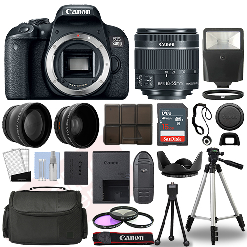 Canon EOS 250D / Rebel SL3 SLR Camera + 3 Lens Kit 18-55mm + 16GB + Flash & More