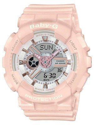From BABY-G, the casual watch for active women, comes a collection of new models with designs accented with rose gold metallic elements, based on the popular mannish design BA-110. These models are available in a choice of standard black or white, or popular pastel pink coloring for the case and band. The main color is accented by cool rose gold color metallic parts that add a distinctively feminine touch to the basic mannish design. These new models are sure to become standard items in the world of autumn and winter street fashions.