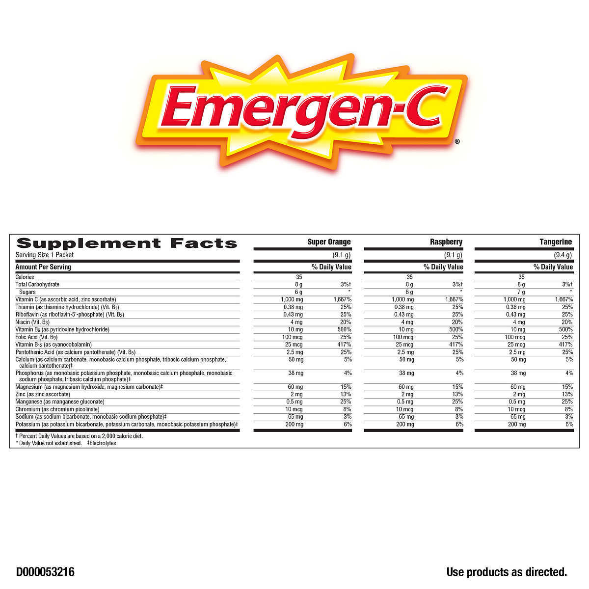 • Start your days with Emergen-C® Original Formula, packed with B vitamins, electrolytes, antioxidants and more Vitamin C than ten oranges^.