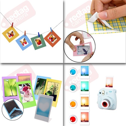 With these frames, you can display your favorite photos on your desk. 5 different colors frames, unique and lightweight. Frames have easel-like backs for easy display and are made of plastic. Compatible with films of Fujifilm Instax Mini 7s 8 90 50s 25 70.