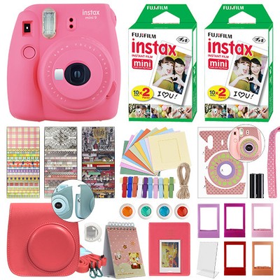 Fujifilm Instax Mini 9 Instant Film Camera Flamingo Pink + 40 Film Deluxe Bundle