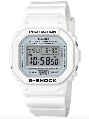 G-SHOCK DW5600MW-7 watch. The white color theme of the new DW5600MW-7 contributes to a design that adds fresh accents to the wrist for summertime wear. The white color fits right in at a sun soaked beach, and provides a great accent to refreshing summertime fashions. Black accents provide a strong contrast with the white, and also add to the overall tough look of this model. All of this and more allows this model to fit right in anywhere from a summertime resort to general casual fashion scenes throughout the entire year. 200m water resistant. 1/100 second stopwatch. Countdown timer. Imported.