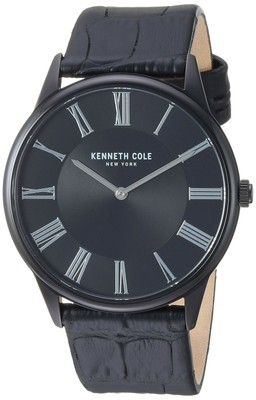 Deliver to: Columbus Ships in 24/48 hrs About The Company Kenneth Cole Productions, Inc. is an American fashion house that was founded in 1982 by Kenneth Cole. Having grown from its footwear roots, Kenneth Cole is now a full lifestyle brand that is forever committed to pushing the boundaries of convention and embracing the notion that, "Today is not a dress rehearsal." Kenneth Cole's stylish collection of clothing, footwear and accessories is refined yet functional. Kenneth Cole has manufactured high quality Timeless, classic and elegant watches and accessories that can be worn for every occasion. The classic and sophisticated timepieces from Kenneth Cole have high-quality standards, anti-allergenic, comfortable to wear and special in their unique design. New York Series Kenneth Cole New York is proud to be a part of Geneva Watch Group. Our collection of iconic modern classics is a refined reflection of the Kenneth Cole New York heritage. Created with the utmost quality and design, these essential pieces exemplify urban, sophisticated style for the fashion conscious and socially aware. New York series has the most expensive line of fashion wrist watches for men and women. All the watch cases are made of stainless steel and topped with a mineral crystal glass for protection. The straps are either made of genuine leather band or high grade stainless steel bracelets. All the watches come with a limited 2-Year Warranty. Our classic looking top rated watches make for good business gifts for all designer fashion centric wristwatch lovers. Minimalists will also love our casual and simple yet smart and luminous models. From exercising, sports, hiking or running and swimming underwater with your dog at the beach to detoxing from the day at home in a robe with a glass of wine and your electronic gadgets. Even the smallest changes in optics can be a large under marker of your core and proof of your worldly taste. Don't zone out or out...stop being a resistant dinosaur and unmask your potential with one of our quality accessories which mesh both time and royal bracelet strap styling. Don’t be led to the mine field of inexpensive clearance or sale watches. Makeup your mind to be the first one to stand up and face times of focus with the best of military accuracy. This Classic men's watch by Kenneth Cole New York boasts a Japanese Quartz movement with analog display covered by a Hardened mineral crystal and is Water Resistant to 3ATM. The Round Black Stainless steel case is of 42mm Diameter and 6.7 mm Thickness and held in place by a 22mm Width Black Leather band with a buckle strap lock. About The Company Kenneth Cole Productions, Inc. is an American fashion house that was founded in 1982 by Kenneth Cole. Having grown from its footwear roots, Kenneth Cole is now a full lifestyle brand that is forever committed to pushing the boundaries of convention and embracing the notion that, "Today is not a dress rehearsal." Kenneth Cole's stylish collection of clothing, footwear and accessories is refined yet functional. Kenneth Cole has manufactured high quality Timeless, classic and elegant watches and accessories that can be worn for every occasion. The classic and sophisticated timepieces from Kenneth Cole have high-quality standards, anti-allergenic, comfortable to wear and special in their unique design. New York Series Kenneth Cole New York is proud to be a part of Geneva Watch Group. Our collection of iconic modern classics is a refined reflection of the Kenneth Cole New York heritage. Created with the utmost quality and design, these essential pieces exemplify urban, sophisticated style for the fashion conscious and socially aware. New York series has the most expensive line of fashion wrist watches for men and women. All the watch cases are made of stainless steel and topped with a mineral crystal glass for protection. The straps are either made of genuine leather band or high grade stainless steel bracelets. All the watches come with a limited 2-Year Warranty.