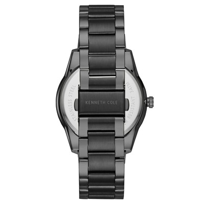 Deliver to: Unknown Ships in 24/48 hrs About The Company Kenneth Cole Productions, Inc. is an American fashion house that was founded in 1982 by Kenneth Cole. Having grown from its footwear roots, Kenneth Cole is now a full lifestyle brand that is forever committed to pushing the boundaries of convention and embracing the notion that, "Today is not a dress rehearsal." Kenneth Cole's stylish collection of clothing, footwear and accessories is refined yet functional. Kenneth Cole has manufactured high quality Timeless, classic and elegant watches and accessories that can be worn for every occasion. The classic and sophisticated timepieces from Kenneth Cole have high-quality standards, anti-allergenic, comfortable to wear and special in their unique design. New York Series Kenneth Cole New York is proud to be a part of Geneva Watch Group. Our collection of iconic modern classics is a refined reflection of the Kenneth Cole New York heritage. Created with the utmost quality and design, these essential pieces exemplify urban, sophisticated style for the fashion conscious and socially aware. New York series has the most expensive line of fashion wrist watches for men and women. All the watch cases are made of stainless steel and topped with a mineral crystal glass for protection. The straps are either made of genuine leather band or high grade stainless steel bracelets. All the watches come with a limited 2-Year Warranty. Our classic looking top rated watches make for good business gifts for all designer fashion centric wristwatch lovers. Minimalists will also love our casual and simple yet smart and luminous models. From exercising, sports, hiking or running and swimming underwater with your dog at the beach to detoxing from the day at home in a robe with a glass of wine and your electronic gadgets. Even the smallest changes in optics can be a large under marker of your core and proof of your worldly taste. Don't zone out or out...stop being a resistant dinosaur and unmask your potential with one of our quality accessories which mesh both time and royal bracelet strap styling. Don’t be led to the mine field of inexpensive clearance or sale watches. Makeup your mind to be the first one to stand up and face times of focus with the best of military accuracy. This Classic men's watch by Kenneth Cole New York boasts a Japanese Quartz movement with analog display covered by a Hardened mineral crystal and is Water Resistant to 3ATM. The round Gun Stainless Steel case is of 42mm Diameter and Thickness and held in place by a 22mm Width Gun Stainless Steel link Bracelet with a Fold-over Clasp with Hidden double push-button. About The Company Kenneth Cole Productions, Inc. is an American fashion house that was founded in 1982 by Kenneth Cole. Having grown from its footwear roots, Kenneth Cole is now a full lifestyle brand that is forever committed to pushing the boundaries of convention and embracing the notion that, "Today is not a dress rehearsal." Kenneth Cole's stylish collection of clothing, footwear and accessories is refined yet functional. Kenneth Cole has manufactured high quality Timeless, classic and elegant watches and accessories that can be worn for every occasion. The classic and sophisticated timepieces from Kenneth Cole have high-quality standards, anti-allergenic, comfortable to wear and special in their unique design. New York Series Kenneth Cole New York is proud to be a part of Geneva Watch Group. Our collection of iconic modern classics is a refined reflection of the Kenneth Cole New York heritage. Created with the utmost quality and design, these essential pieces exemplify urban, sophisticated style for the fashion conscious and socially aware. New York series has the most expensive line of fashion wrist watches for men and women. All the watch cases are made of stainless steel and topped with a mineral crystal glass for protection. The straps are either made of genuine leather band or high grade stainless steel bracelets. All the watches come with a limited 2-Year Warranty.