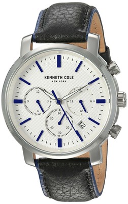 About The Company Kenneth Cole Productions, Inc. is an American fashion house that was founded in 1982 by Kenneth Cole. Having grown from its footwear roots, Kenneth Cole is now a full lifestyle brand that is forever committed to pushing the boundaries of convention and embracing the notion that, "Today is not a dress rehearsal." Kenneth Cole's stylish collection of clothing, footwear and accessories is refined yet functional. Kenneth Cole has manufactured high quality Timeless, classic and elegant watches and accessories that can be worn for every occasion. The classic and sophisticated timepieces from Kenneth Cole have high-quality standards, anti-allergenic, comfortable to wear and special in their unique design. New York Series Kenneth Cole New York is proud to be a part of Geneva Watch Group. Our collection of iconic modern classics is a refined reflection of the Kenneth Cole New York heritage. Created with the utmost quality and design, these essential pieces exemplify urban, sophisticated style for the fashion conscious and socially aware. New York series has the most expensive line of fashion wrist watches for men and women. All the watch cases are made of stainless steel and topped with a mineral crystal glass for protection. The straps are either made of genuine leather band or high grade stainless steel bracelets. All the watches come with a limited 2-Year Warranty. Our classic looking top rated watches make for good business gifts for all designer fashion centric wristwatch lovers. Minimalists will also love our casual and simple yet smart and luminous models. From exercising, sports, hiking or running and swimming underwater with your dog at the beach to detoxing from the day at home in a robe with a glass of wine and your electronic gadgets. Even the smallest changes in optics can be a large under marker of your core and proof of your worldly taste. Don't zone out or out...stop being a resistant dinosaur and unmask your potential with one of our quality accessories which mesh both time and royal bracelet strap styling. Don’t be led to the mine field of inexpensive clearance or sale watches. Makeup your mind to be the first one to stand up and face times of focus with the best of military accuracy. This classic men's watch by Kenneth Cole New York boasts a Japanese Quartz movement with analog display covered by a Hardened Mineral Crystal & is Water Resistant to 3ATM (30 meters). The round Silver-Toned Stainless Steel case is of 42.5mm Diameter & 11mm Thickness & held in place by a 22mm Width Black Genuine Leather strap with a Buckle strap lock. About the Company Kenneth Cole Productions, Inc. is an American fashion house that was founded in 1982 by Kenneth Cole. Having grown from its footwear roots, Kenneth Cole is now a full lifestyle brand that is forever committed to pushing the boundaries of convention & embracing the notion that, "Today is not a dress rehearsal." Kenneth Cole's stylish collection of clothing, footwear & accessories is refined yet functional. Kenneth Cole has manufactured high quality Timeless, classic & elegant watches & accessories that can be worn for every occasion. The classic & sophisticated timepieces from Kenneth Cole have high-quality standards, anti-allergenic, comfortable to wear & special in their unique design. New York Series Kenneth Cole New York is proud to be a part of Geneva Watch Group. Our collection of iconic modern classics is a refined reflection of the Kenneth Cole New York heritage. Created with the utmost quality & design, these essential pieces exemplify urban, sophisticated style for the fashion conscious & socially aware. New York series has the most expensive line of fashion wrist watches for men & women. All the watch cases are made of stainless steel & topped with a Hardened Mineral Crystal glass for protection. The straps are either made of genuine leather band or high grade stainless steel bracelets. All the watches come with a limited 2-Year Warranty.