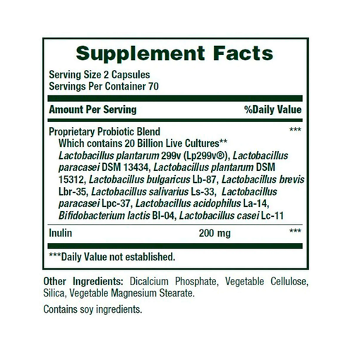 • 20 Billion Live Probiotic Cultures