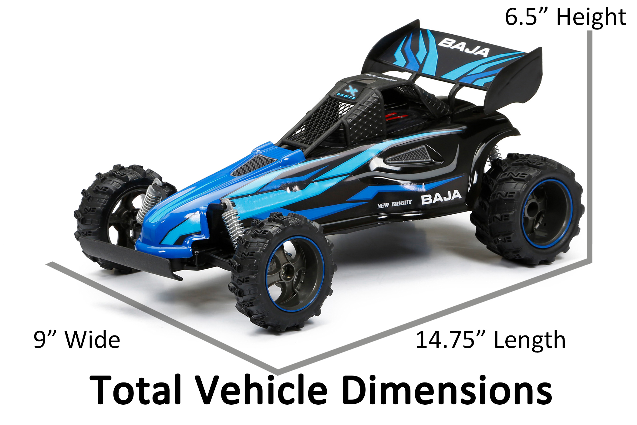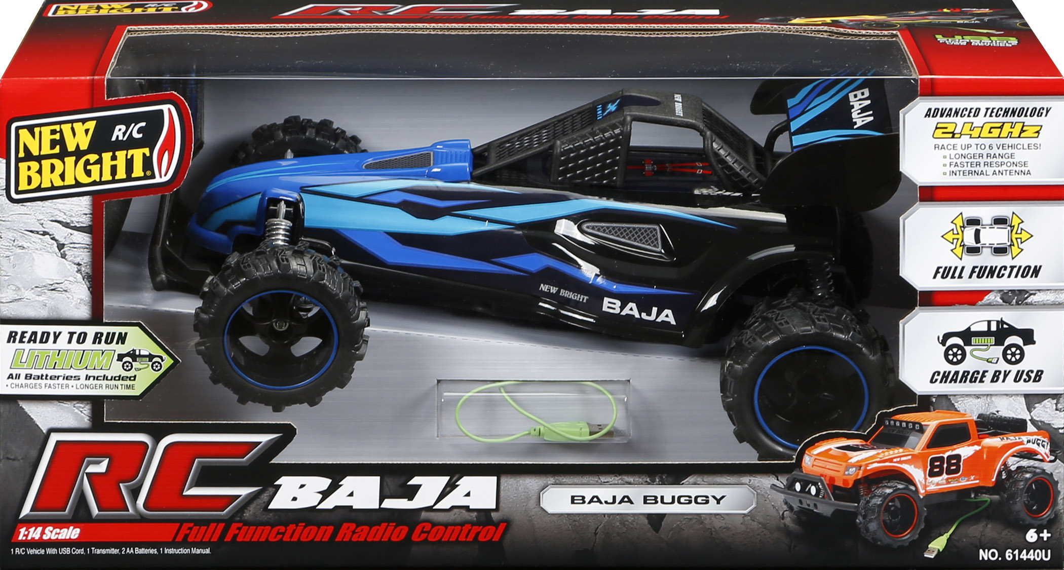 Deliver to: Unknown Ships in 24/48 hrs Watch the dirt fly and the competition cry with the 1:14 scale Baja Extreme Interceptor Buggy. Knobby tires, super spring suspension and a ton of attitude are packed into this Baja beast! With full turning capabilities, 2.4GHz technology and USB battery charging you'll be able to drive like a pro and be the talk of the trail. All required batteries are included so all you'll need to do is choose which color you want, maybe both!
