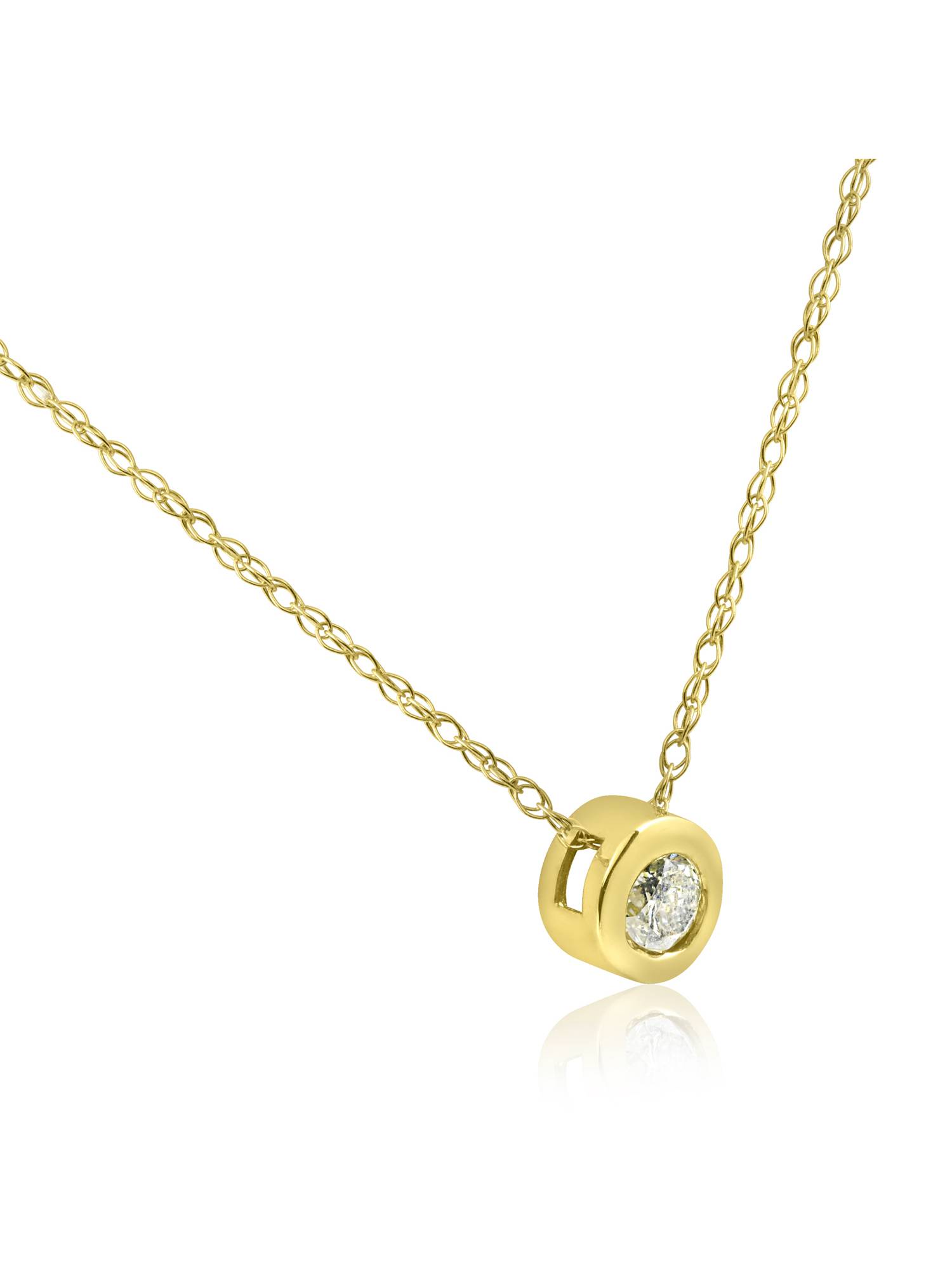 14K Yellow Gold 1/4ct Round Diamond Solitaire Bezel Pendant & 18" Chain:
