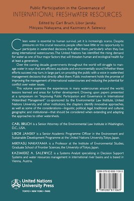 Deliver to: Unknown Ships in 24/48 hrs The United Nations has identified the rising demand for water as one of the major threats to human and ecological health for at least a generation. Over the coming decade, governments throughout the world will struggle to manage water in ways that are efficient, equitable, and environmentally sound. The success of these efforts may depend on giving the public a voice in watershed management decisions that directly affect them. Public involvement holds the promise of improving the management of international watercourses and reducing the potential for conflict over water issues. This volume examines the experiences in many watercourses around the world, drawing lessons learned and highlighting areas for further development. The book also identifies factors—linguistic, political, legal, traditional and cultural, geographic, and institutional—that should be considered in extending and adapting the approaches to other watersheds.
