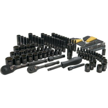 The STANLEY 123 Piece Mechanics Tool Set includes a complete selection of high-quality ratchet handles, sockets, extensions, hex keys, and more. This set gives you easy access to a range of popular hand tools. Working on your vehicle is made easy with the STANLEY Black Chrome Mechanics Tool Set. This 123 piece set exceeds ANSI specifications and includes universal sockets, high torque ratchets, and more in a variety of sizes. Universal sockets fit up to 6 different faseners allowing for allowing for maximum on the job use!