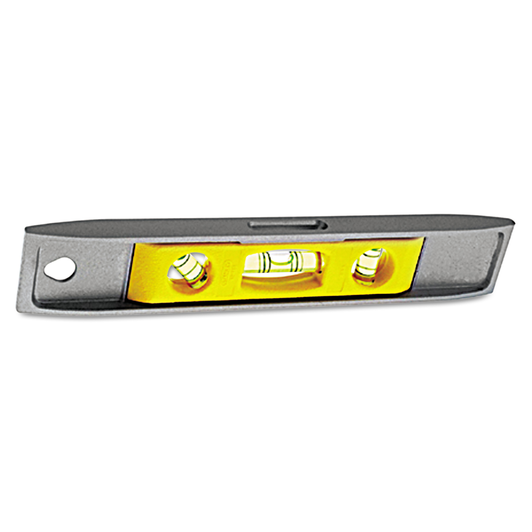 Deliver to: Columbus Ships in 24/48 hrs Heavy-duty cast aluminum level provides professional-grade reliability and durability. Tinted vials help enhance readability. Grooved top permits use on curved surfaces such as pipes and conduits. Base features a magnetic strip for extra stability on metal surfaces.