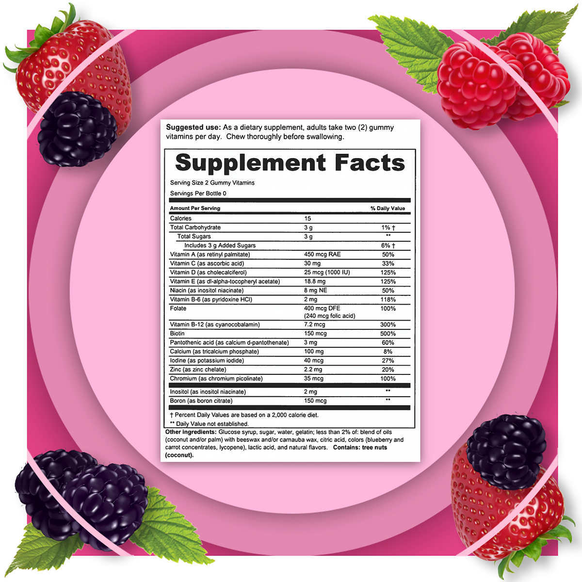 Get your nutrition from America's #1 gummy vitamin brand‡! vitafusion Women's Complete Multivitamin is a delicious essential multivitamin for energy metabolism, bone & immune support.** Made from a powerful fusion of vitamins, minerals and fruit flavors, these delightful gummies are loaded with 14 essential nutrients, including Vitamins A, C, D, E, B6, B12, Biotin, Calcium and more!