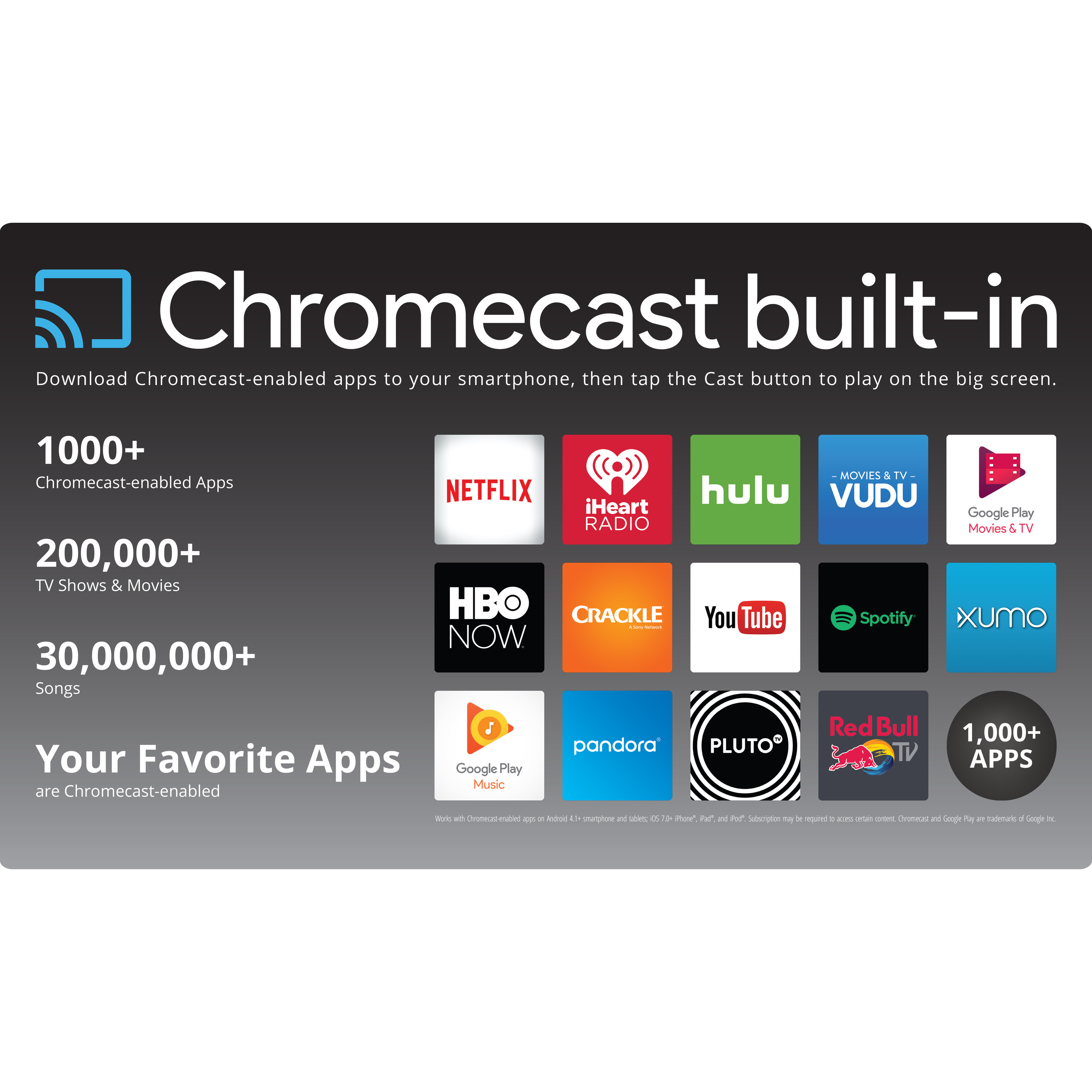 Chromecast built-in: Stream up to 4K and HDR from apps like Netflix and YouTube, or browse over 200,000 TV shows & movies, 30 million songs, plus radio, sports, games, and more. Discover a range of free, subscription or paid content from thousands of apps.